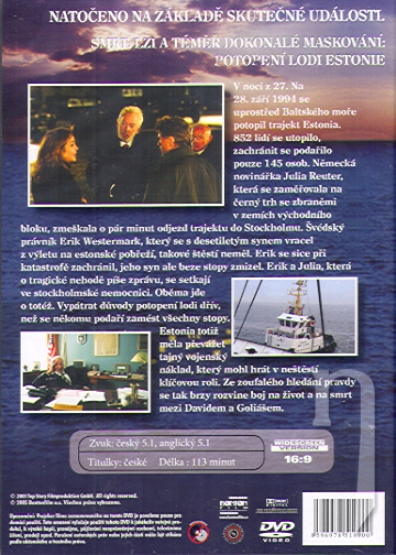 V noci z 27. Na 28. září 1994 se uprostřed Baltského moře potopil trajekt Estonia. 852 lidí se utopilo, zachránit se podařilo pouze 145 osob. Německá novinářka Julia Reuter, která se zaměřovala na černý trh se zbraněmi v zemích východního bloku, zmeškala o pár minut odjezd trajektu do Stockholmu. Švédský právník Erik Westermark, který se s desetiletým synem vracel z výletu na estonské pobřeží, takové štěstí neměl. Erik se sice při katastrofě zachránil, jeho syn ale beze stopy zmizel. Erik a Julia, která o tragické nehodě píše zprávu, se setkají ve stockholmské nemocnici. Oběma jde o totéž. Vypátrat důvody potopení lodi dřív, než se někomu podaří zamést všechny stopy. Estonia totiž měla převážet tajný vojenský náklad, který mohl hrát v neštěstí klíčovou roli. Ze zoufalého hledání pravdy se tak brzy rozvine boj na život a na smrt mezi Davidem a Goliášem.